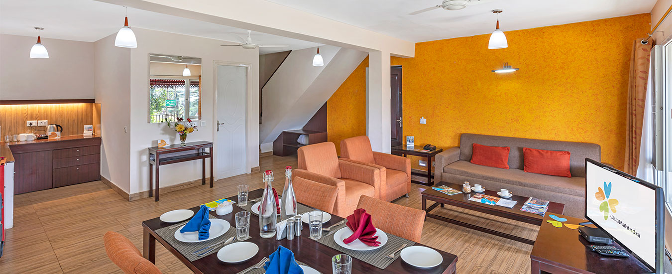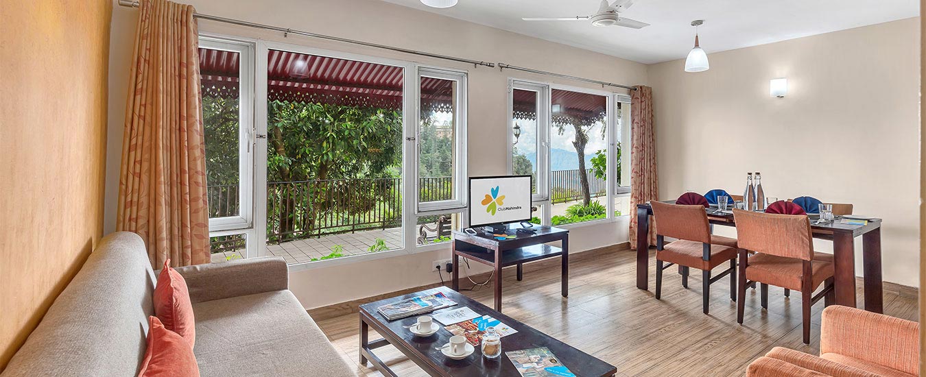 The aesthetically-decorated rooms of Club Mahindra Mussoorie are well-furnished with modern amenities. Most of the rooms offer an unobstructed view of the snow-capped Himalayas and the Doon Valley. Guests can choose to stay either in the 1-bedroom or the studio rooms at the resort. Each room has an LED TV, sofa-cum-bed, dry kitchenette, mini-fridge, tea/coffee maker, microwave oven and basic utensils for cooking. Laundry services are also available for the guests.