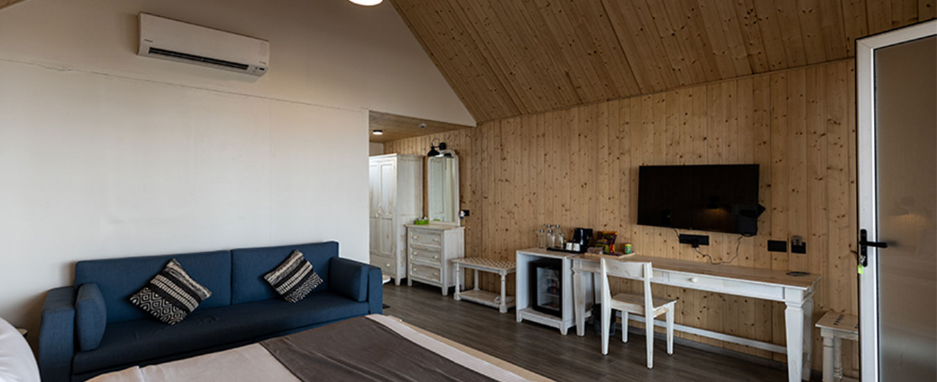 Take joy in seclusion in your private space as rooms at Praveg Beach Resort Daman, Jampore spell comfort. Treat your eyes to rooms characterizing cool palettes and clean, modern lines. Thoughtfully designed, subtle tones and expansive glass windows keep them well-lit. Each room comes with a delightful sit-out area with patio recliner chairs along with an AC, a Coffee/ Tea Maker, a Television, and much more. Guests can opt for charming pool-facing views or pick on views opening up to the breathtaking sight of the sea. Ensuring a stay that’s as comfortable as it is picturesque, rooms at Praveg Beach Resort Daman, Jampore are true havens of relaxation.